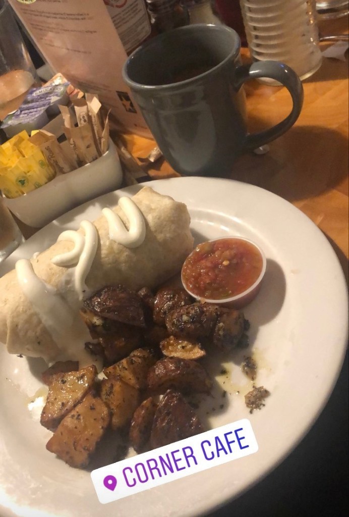 As you may know, I was in Newport, Rhode Island for Officer Candidate School. One of the spots that I had checked out while I was there was this small little cafe called Corner Cafe. If you’ve never been to Newport, it is a pretty small town with cute character. It was dead in the winter time, however I have heard it is very busy in the summer with tourists. Anyways, the morning I was leaving to go home; my friends and I checked out this local spot. The cafe had a nice environment with friendly service. It seemed to be a popular spot for the locals on a Friday morning. They had a huge variety on their menu for both food and coffee drinks. I am a lover of breakfast burritos, so naturally I had to get a breakfast burrito. I got the Ponderosa breakfast burrito which had scrambled eggs, bacon, potatoes, and cheddar served with salsa and sour cream. It was served with seasoned potatoes on the side. My friends and I shared a pot of regular hot coffee, which was delicious. The waitress was sure to make sure our coffee cups were full the whole time. You can visit http://www.cornercafenewport.com/index.html for their full menu as they have breakfast, lunch, and dinner options. If you ever find yourself in Rhode Island, I highly recommend you stop by the Corner Cafe and give them a try!